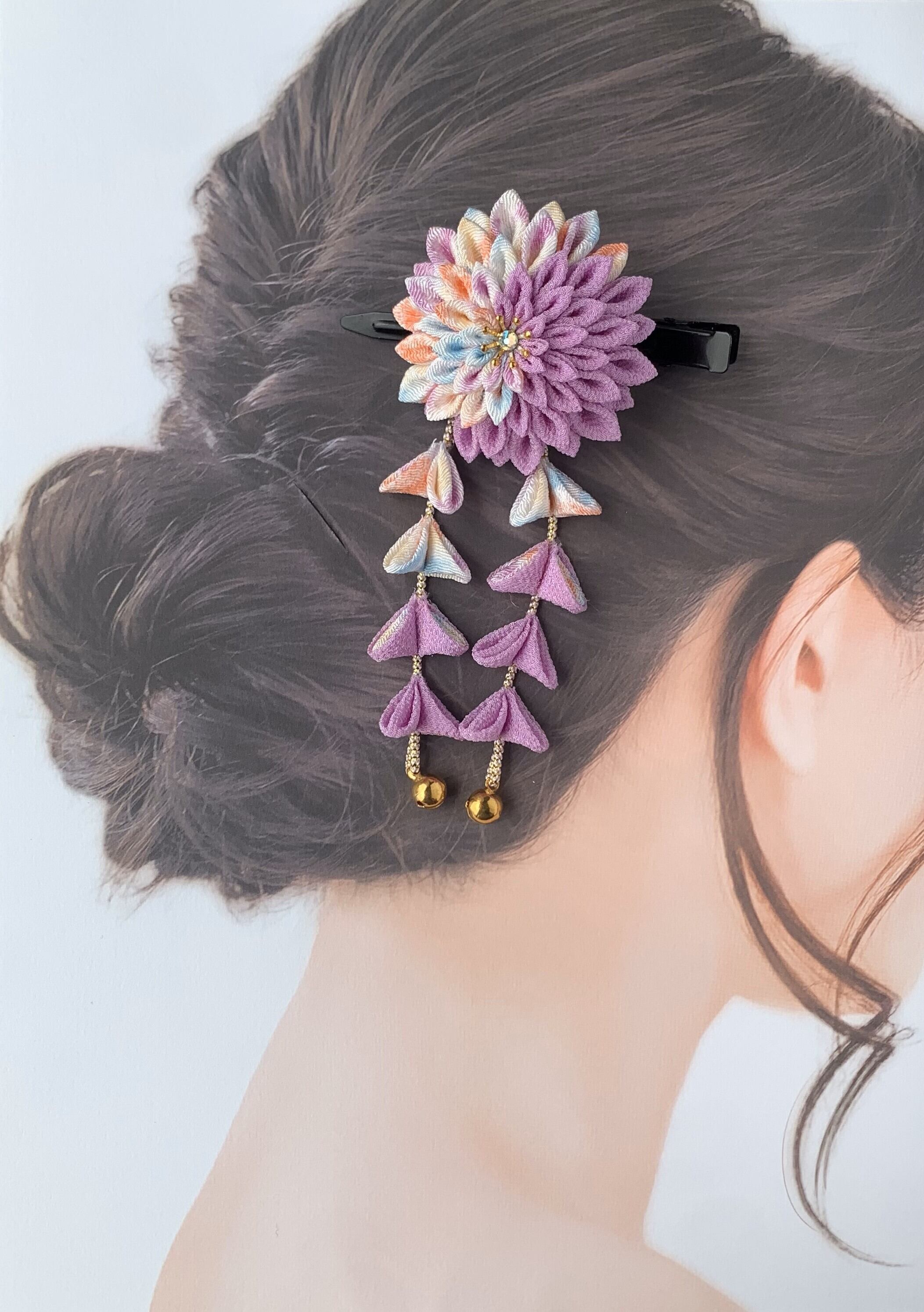 ちりめん生地の半くす菊です。藤さがりは取り外し可能です。